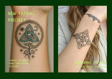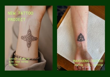 At MaxDuong Tattoo in Da Nang, we specialize in bringing these timeless symbols to life with precision and artistry. With nearly 10 years of experience serving over 90% international clients, our team understands the cultural significance and technical demands of Celtic knot tattoos. From intricate Trinity knots to expansive full-back designs, we ensure every line is crisp, every pattern symmetrical, and every tattoo a masterpiece that honors both tradition and personal meaning.