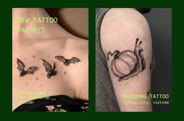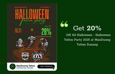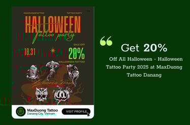 Celebrate Halloween 2025 with MaxDuong Tattoo Da Nang! Enjoy 20% OFF all Halloween-themed tattoo designs from October 25–31. Explore exclusive flash designs, custom ideas, and meet award-winning artists for a safe, professional tattoo experience.