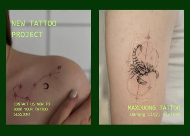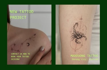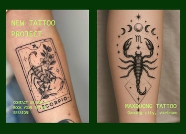 MaxDuong Tattoo in Da Nang—with nearly 10 years of mastery in the art of ink—has become the sanctuary for Scorpio souls seeking tattoos that capture their complex essence. Whether you're drawn to the deadly elegance of the scorpion, the cosmic mystery of the constellation, or the transformative power of the phoenix, we bring your vision to life with precision and artistry.