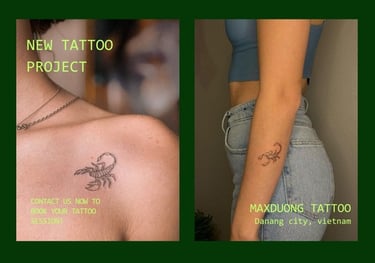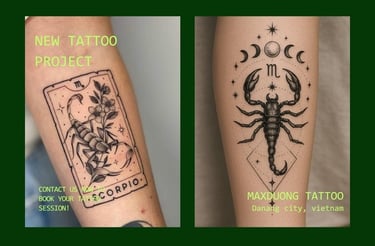 Discover the meaning and power of Scorpio tattoos with MaxDuong Tattoo in Da Nang. Explore designs inspired by rebirth, passion, and mystery—crafted by international artists with premium quality and hygiene.
